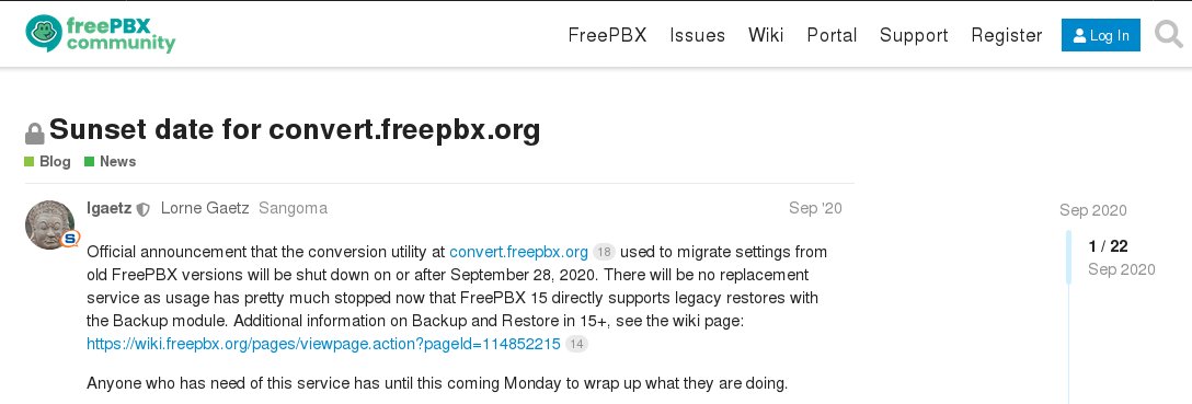 После вводе команды: "curl -s https://convert.freepbx.org | bash" для начала процесса переноса настроек - тишина.