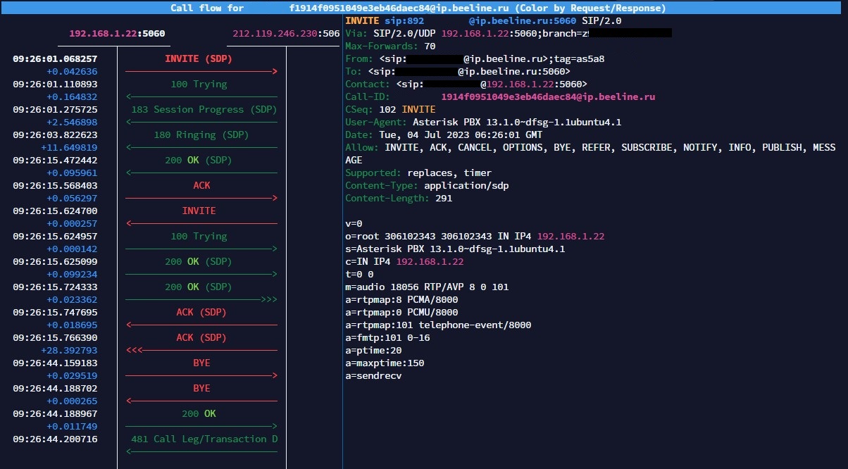 Проблема в том, что когда я запускаю всё, начинаю обзвон на Beeline, когда совершается звонок, И Я СБРАСЫВАЮ ТРУБКУ, Asterisk делает у себя что я ВЗЯЛ, ВСЁ ПРОСЛУШАЛ И ПОТОМ ТОЛЬКО СБРОСИЛ.