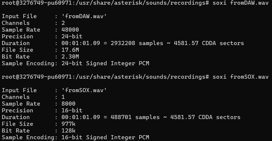 Исходник файла из DAW и он же, после обработки SOX.