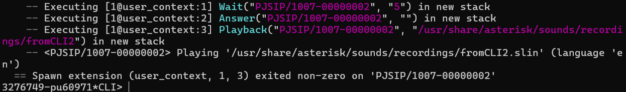 same => n,Playback(/usr/share/asterisk/sounds/recordings/fromCLI2)