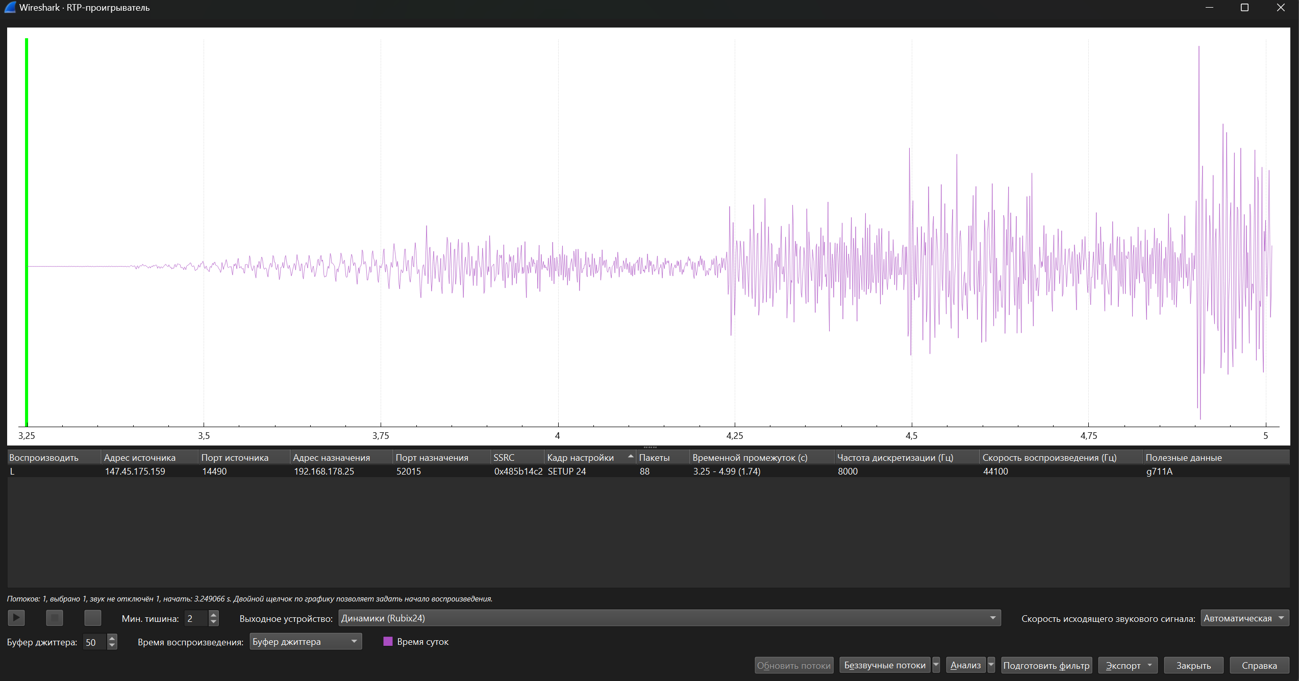 RTP поток выше - тоже содержит звук. Но меня интересует именно нижний - так как в нём мелодия, которая мне нужна