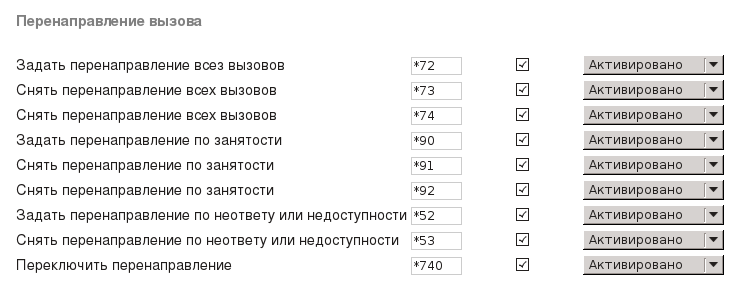 Стандартные феатуры freePBX