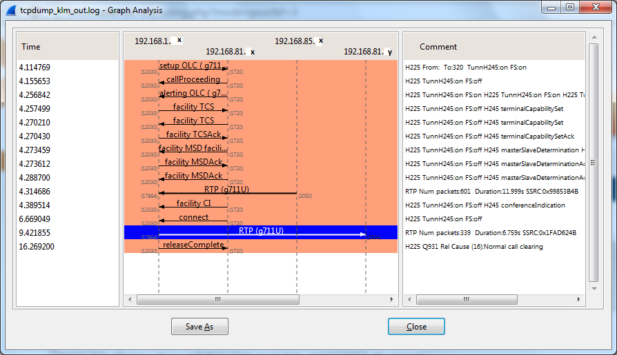 Снимал логи на астериске tcpdump'ом , затем загружал в Wireshark.