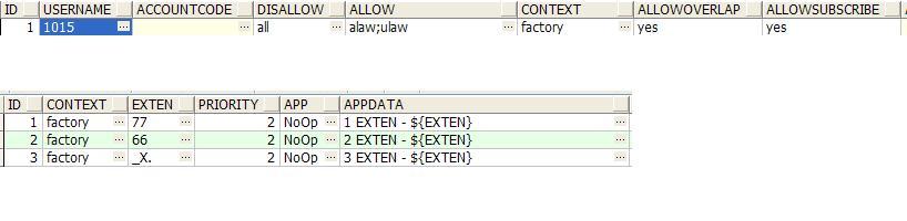 Подключил Asterisk к БД ORACLE через ODBC, создал таблички sipusers и extensions. И пытаюсь настроить использование шаблона номера _X. через realtime. Но не получается.