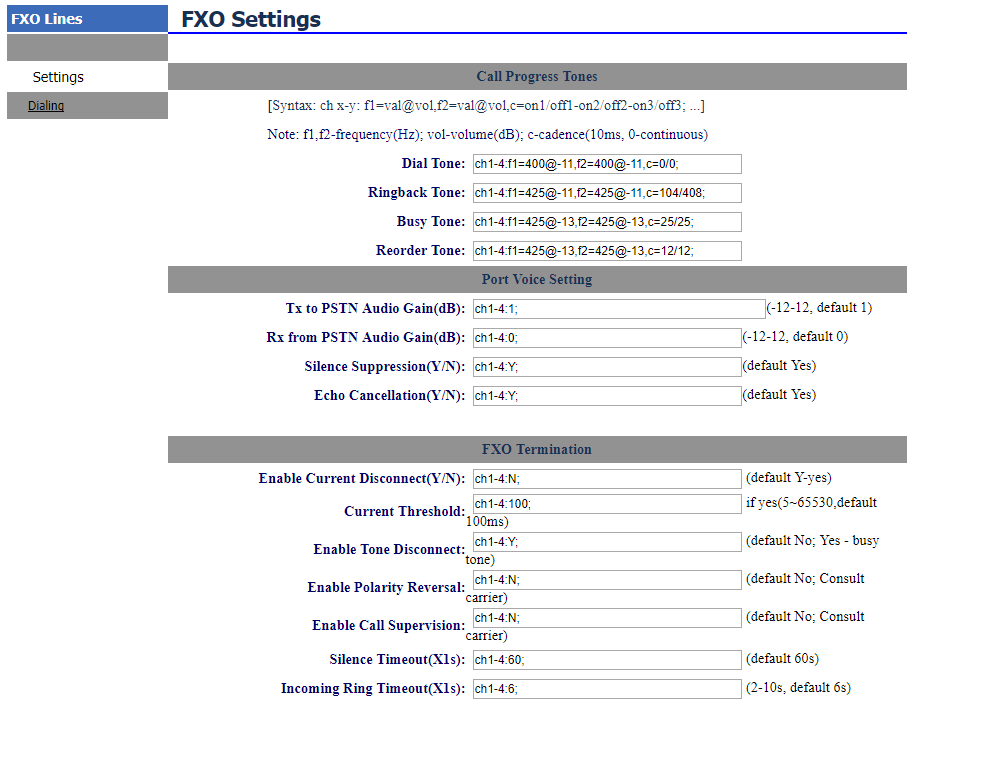 На скриншоте я прилагаю настройки шлюза, я определял значения busy tone исходя из автоматического анализа линии организованной в самом шлюзе, а так же анализируя запись звонка в программе Audacity, но при любых этих и других настройках ничего не происходит, звонок не отбивается.