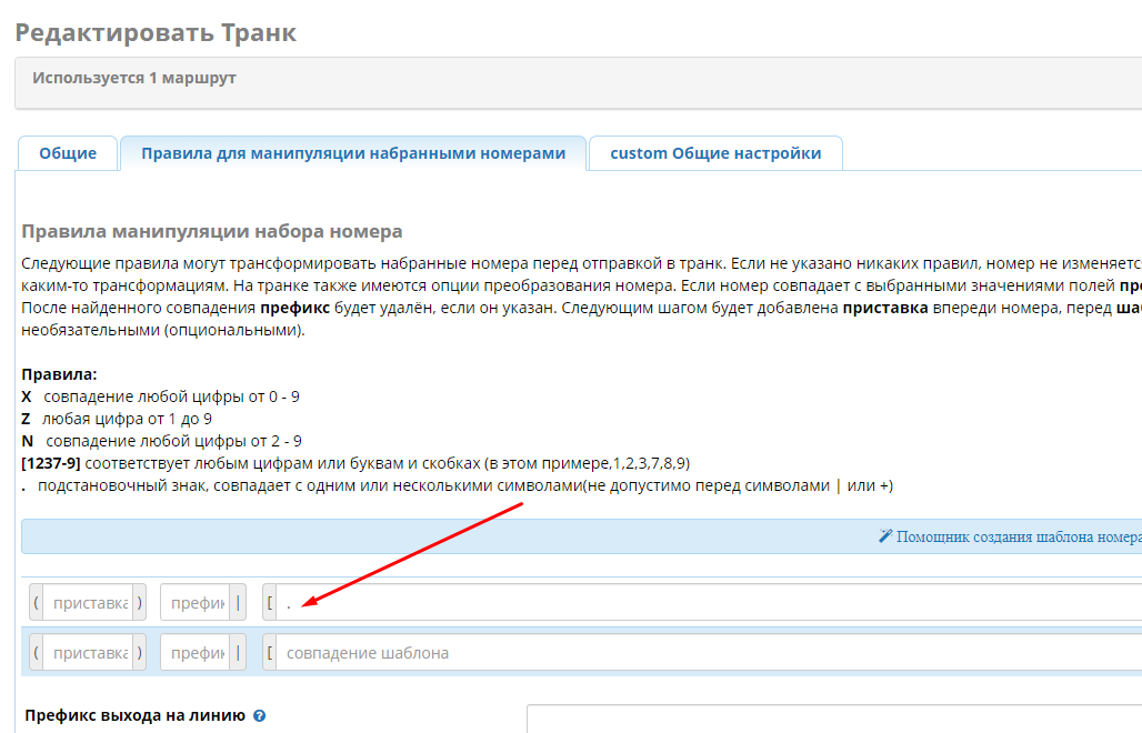 Во FrePBX14 создал Cuscom trank (файлы trank1_x) и исходящий маршрут (файлы isx1_x)