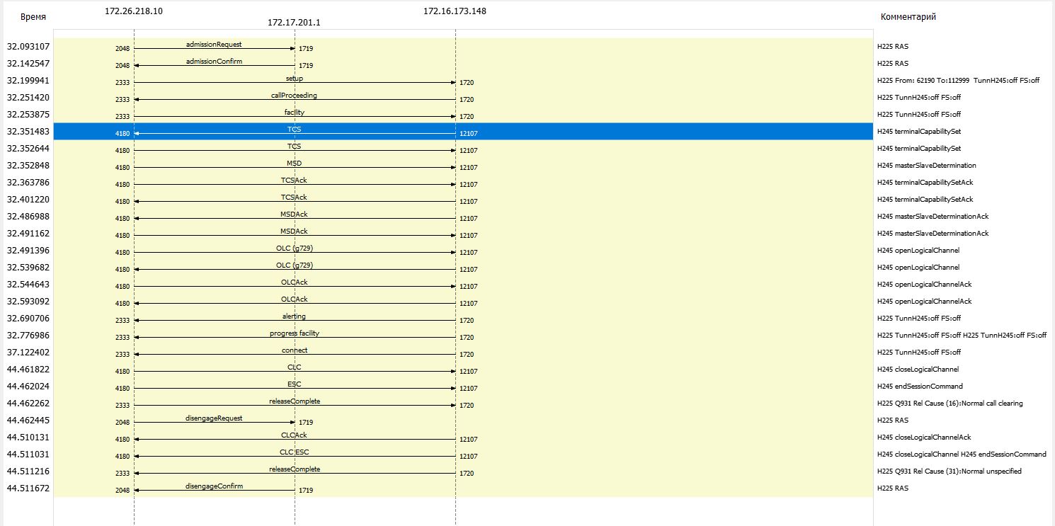 Успешные вызовы. всегда за отправленным астериском (173.148) сообщением TCS