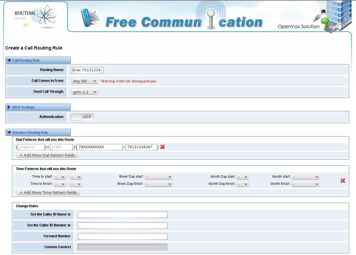 то на стороне OpenVox можно разрулить по CallerID в кастомном контексте.