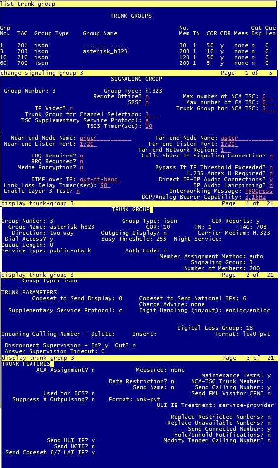 Добрый день! Большое спасибо за предложенную помощь! После долгих копаний и перенастроек первого успеха добилась - есть связь от Астериска к Авайя. более того, даже есть звук в обе стороны, что несказанно радует. Чуть позже выложу все конфиги для дальнейших "копателей"