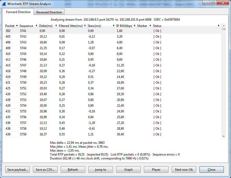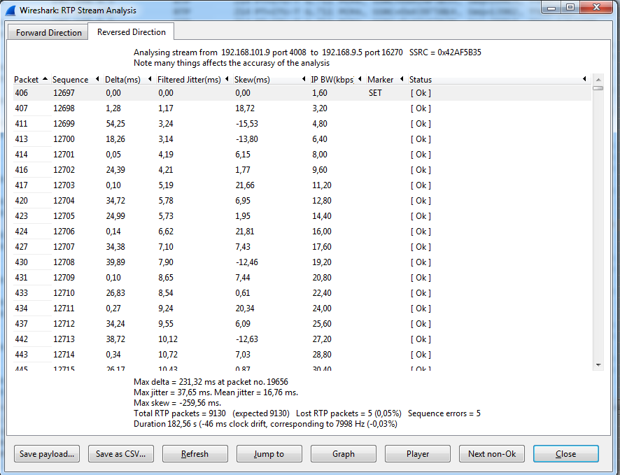 Zavr2008 писал(а):адаптивный jitter не особо эффективен при подобном. В Wireshark в плеере RTP можно задать нужный jitter buffer - на нем и поиграться подобрать.