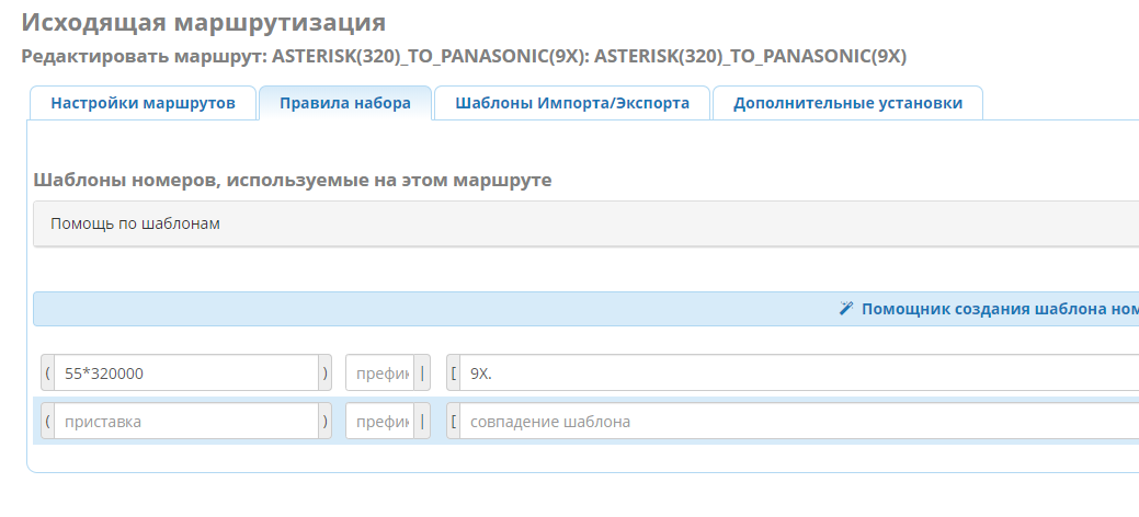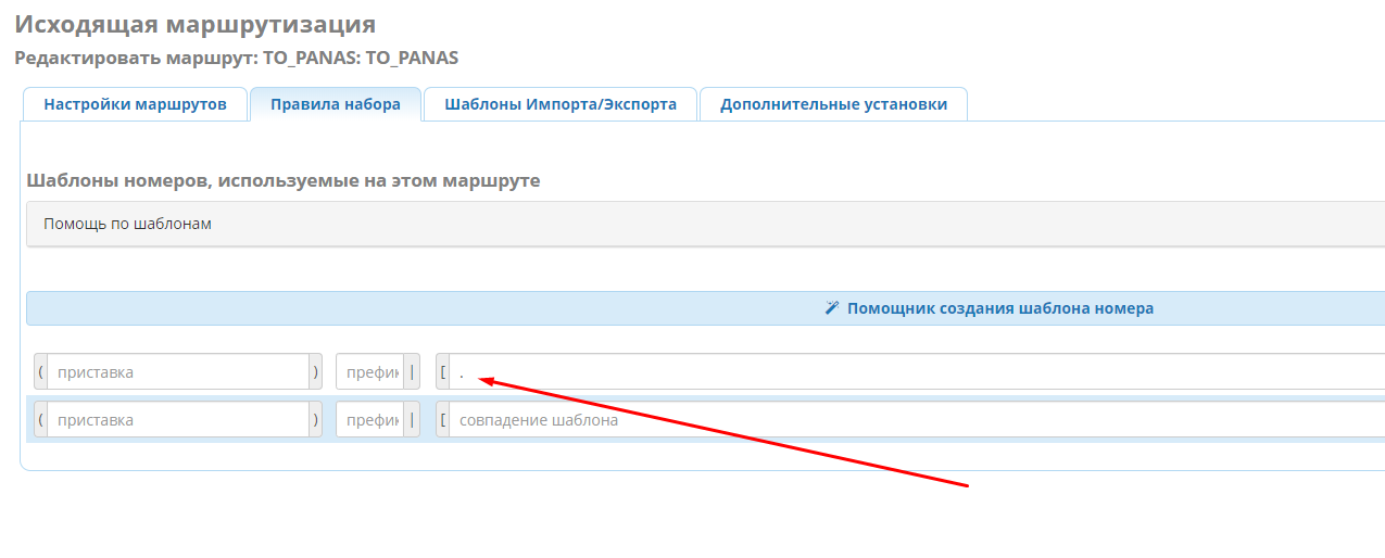 4) Исходящая маршрутизация: там где точеска - указать вместо неё шаблон