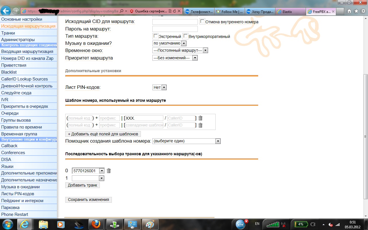 что Имеем: 1 транк на вход -1 на выход. все бы хорошо. но как сделать так чтоб при входящем звонке, если внутренний номер не отвечает в течение 30 секунд звонок уходил на моблиьный через другой транк.