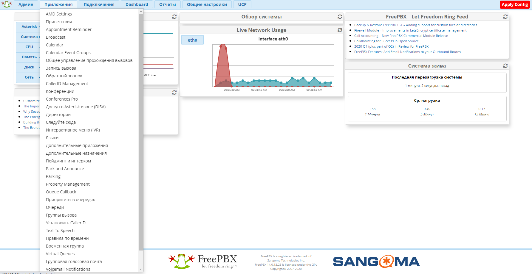 Re: Урезанный интерфейс FrePBX14