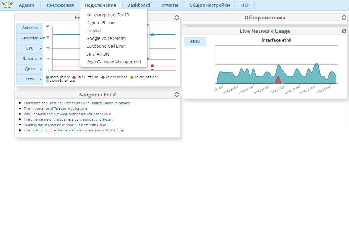 Урезанный интерфейс FrePBX14