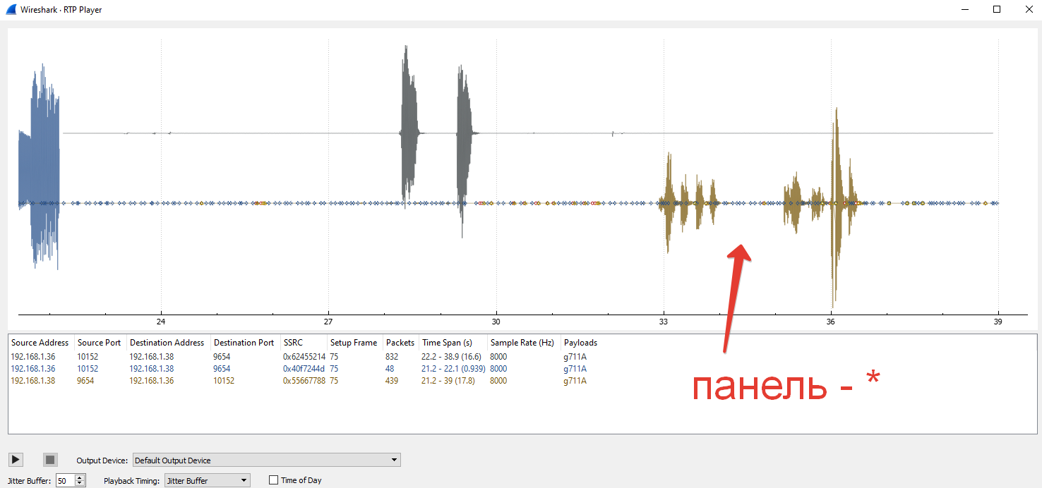 Анализ RTP пакетов говорит, что потери 1,6% на плече панель -> астериск.