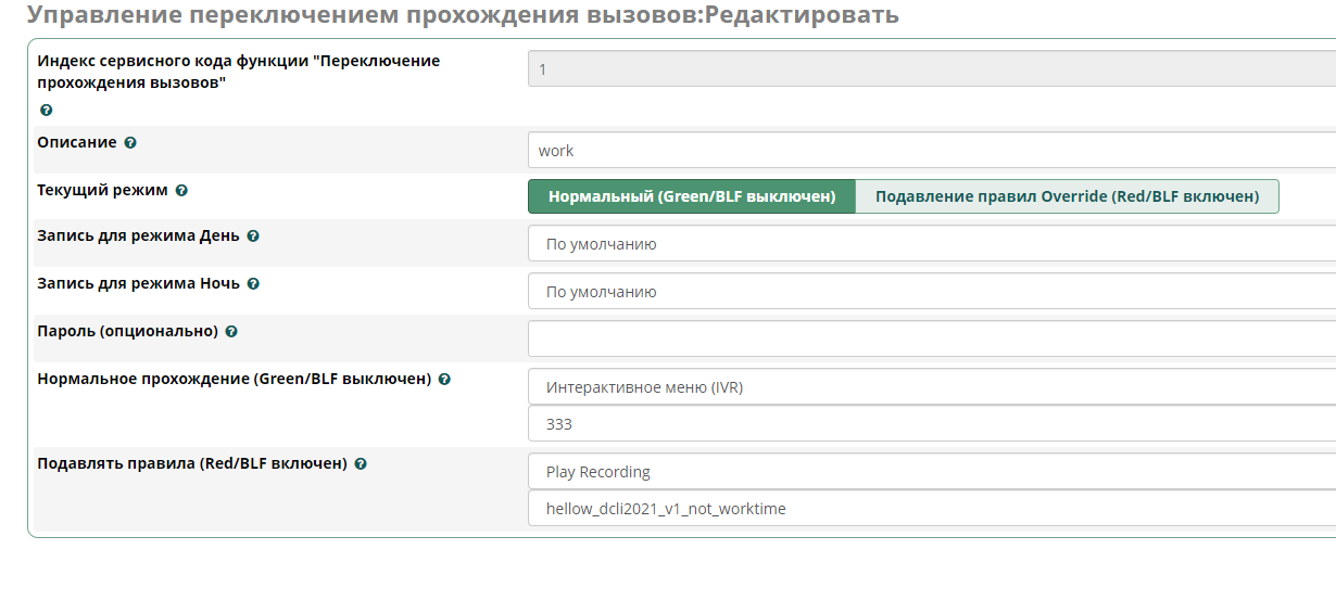 В приложенииях - общее управление прохождением вызова с сервисным кодом *281 при нормальном прохождении вызываетс IVR в противном случае проигрывается общение "вы позвонили в нерабочие часы"
