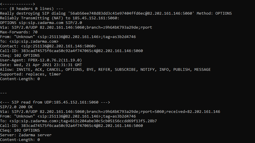 [ ] 1712 OPTIONS 251136@82.202.161.146 sip.zadarma.com 2 82.202.161.146:5060 185.45.152.161:5060