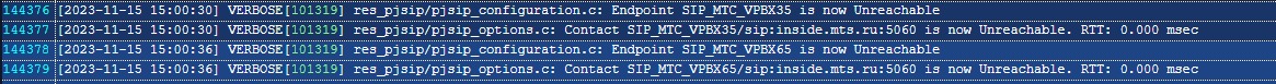 126161 [2023-11-15 03:40:39] WARNING[117203] res_pjsip_outbound_registration.c: No response received from 'sip:sip_******@inside.mts.ru:5060' on registration attempt to 'sip:sip_*******@inside.mts.ru:5060', retrying in '60'