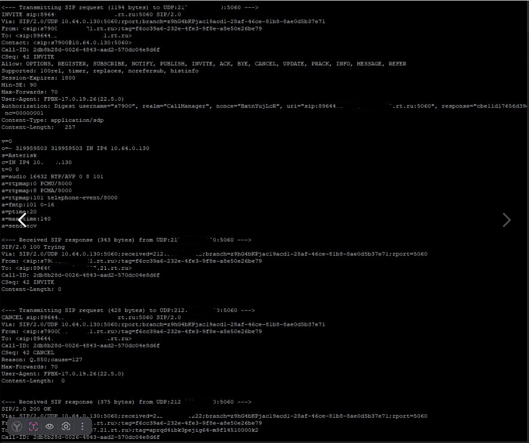 P.S. Зачем вы в call flow Wireshark замазываете ИП адрес вашего Астериска 10.64.0.130 ? Он там во всех местах светится.