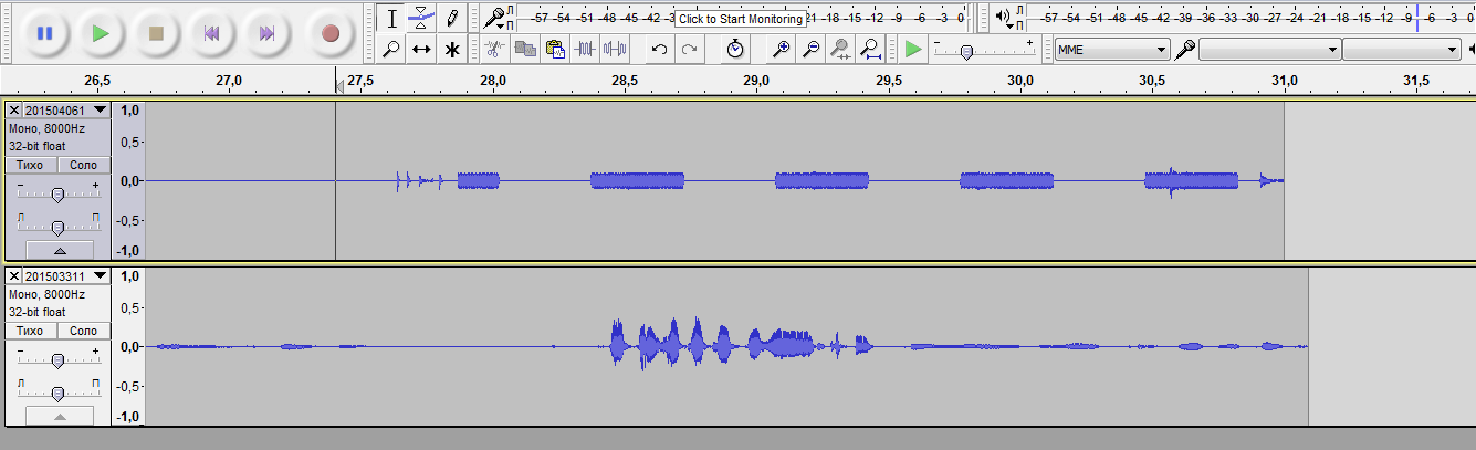 На скриншоте первая дорожка аудиофайла - нормальный обрыв связи. Вторая дорожка - некорректный обрыв.
