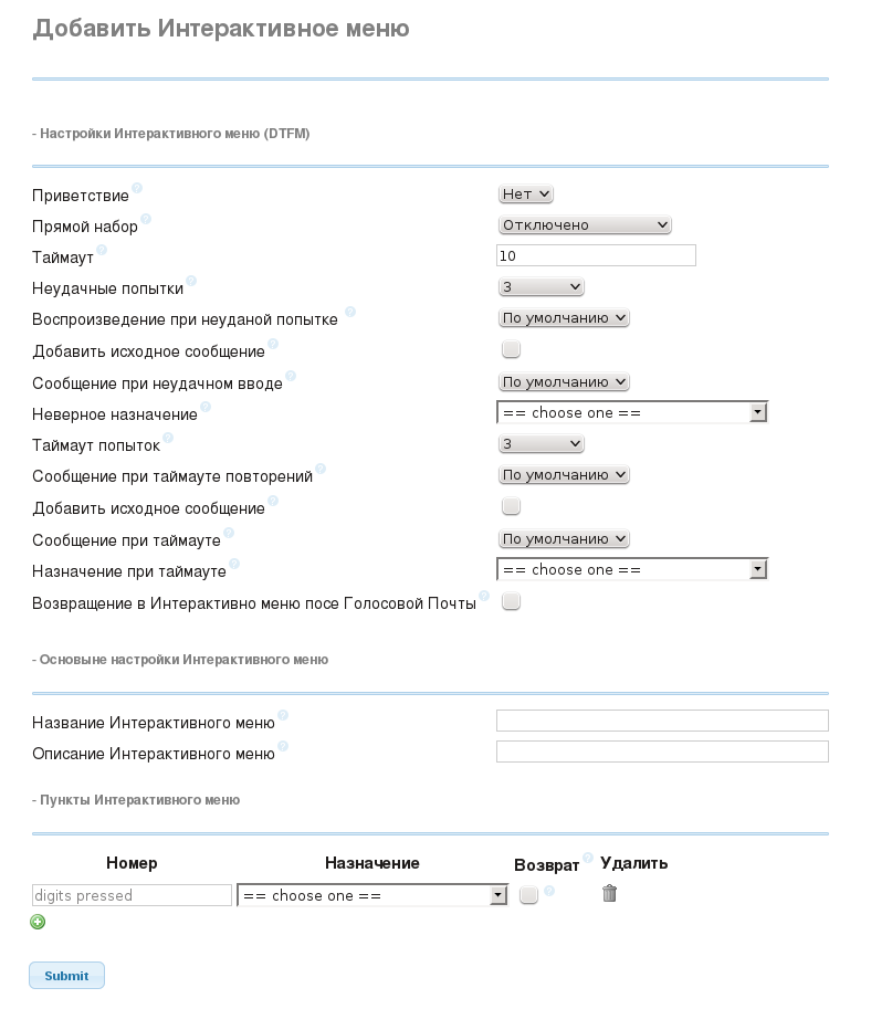 Timeout Retries - если не получено ни одного сигнала DTMF в течении таймаута то количество таких таймаутов, затем что сказать и куда отправить при превышении этого чилса.