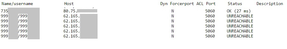 Добрый день. Атериск 11.2.1. Настроены 5 линий одного SIP номера. На входящий и исходящий вызов. Всё работало, как часы. Но в один прекрасный момент, при дозвоне на номер, начал выдаваться короткий гудок. При дозвоне с этого номера, говорит, что все линии заняты. Делаю sip show peers. Выдается то, что находится во вложении. Один из SIP-номеров другого провайдера как работал, так и работает. А нужные номера недоступны.