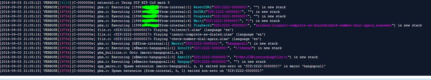 [2016-09-03 21:05:13] VERBOSE[19756][C-0000000e] pbx.c: Executing [18961ххххххх@from-internal:5] Playback("SIP/2222-00000017", "silence/1&cannot-complete-as-dialed&check-number-dial-again,noanswer") in new stack